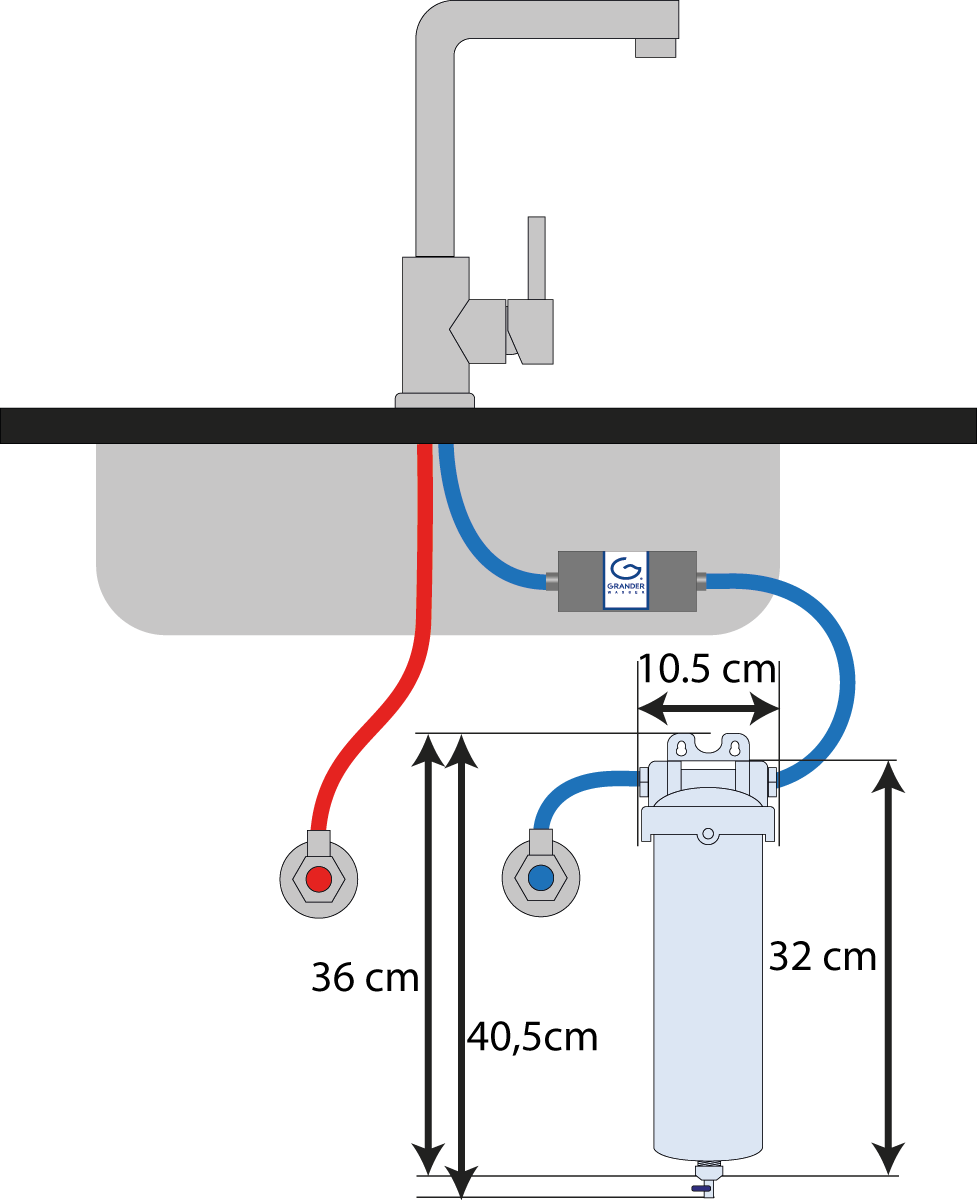 The SAN-MINI under-sink system is ideal for rented flats because no modifications are required. The housing is installed between the angle valve and the cold water connection of the existing tap. It can therefore be easily removed.